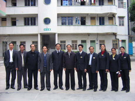 2005年12月7日,湛江市市委宣傳部副部長兼文明辦主任張建業(yè)(左6)及麻章區(qū)委副書記兼宣傳部長邱莊勝(左5)等一行5人到我校檢查評估“湛江市文明單位”工作。